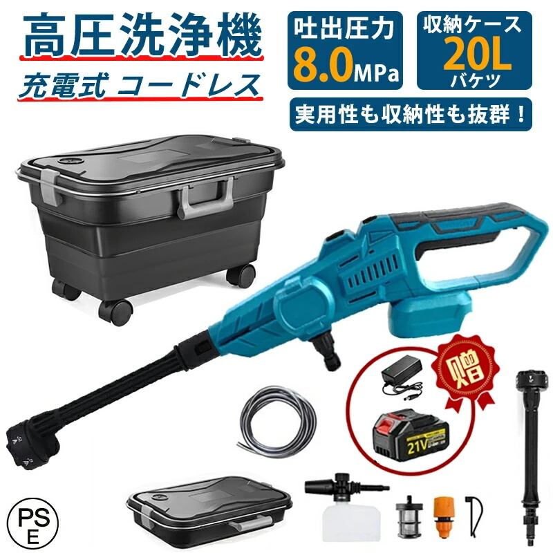即納 高圧洗浄機 22L折り畳みバケツ コードレス 充電式 12MPa 強力噴射 マキタバッテリー対応 大容量 ハンディ 軽量 収納ケース付 水道接続 自吸式 家庭 正規品
