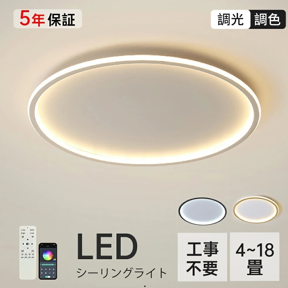 シーリングライト LED 6畳 8畳 12畳 18畳 おしゃれ 北欧 調光調色 間接照明 丸型 薄型 寝室 洋室 和室 リビング 居間 アパートライト おすすめ 工事不要 節電