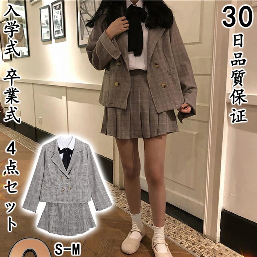 4点セット 制服 卒業式 小学校 女子 スーツ ホワイト グレー 卒服 女の子 お受験 プリーツスカート スクール スカート発表会 チェック柄 無地 女子 高校生p210563202804 | yappy00