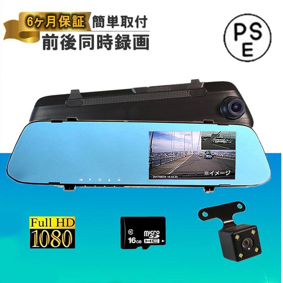 ドライブレコーダー ミラー型 前後 カメラ 16GB メモリーカードセット 2カメラ バックカメラ ミラー 後方 一体型 FULLハイビジョン映像 送料無料 6ヶ月保証p210653862d66 | yappy00