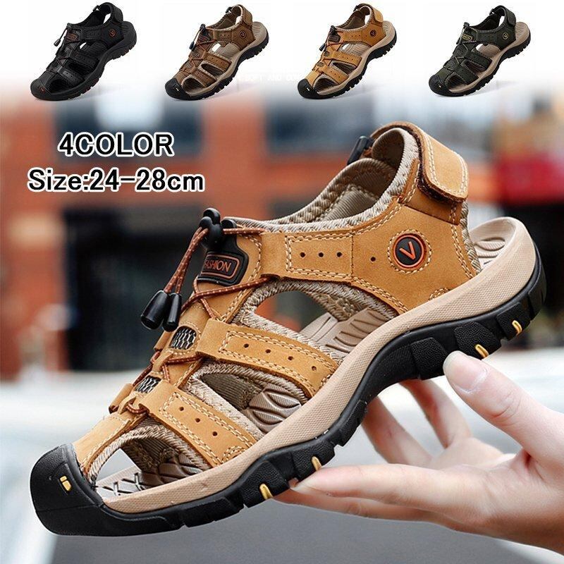 サンダル メンズ スポーツサンダル 本革 大きいサイズ 海 ビーチ 旅行 登山カジュアル 滑り止め 履きやすい リラックス 男性 靴 アウトドア 2021夏lx0405214bf1 | yappy00