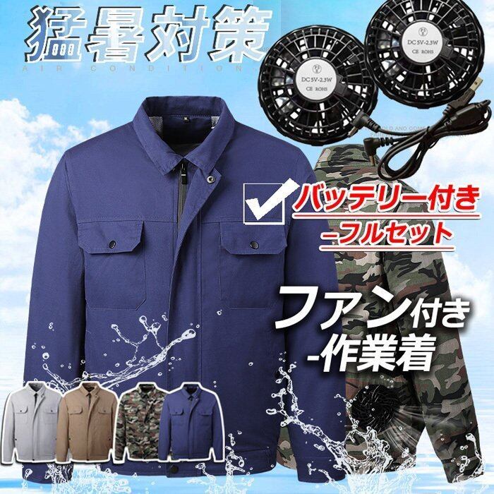 空調作業服セット メンズ 長袖 ファン付き作業着 USBファン 3段階風速 迷彩 熱中症対策 ジャケット 電動ファン 小型扇風機付 室外作業 仕事服 クールktf154026124af13 | yappy00