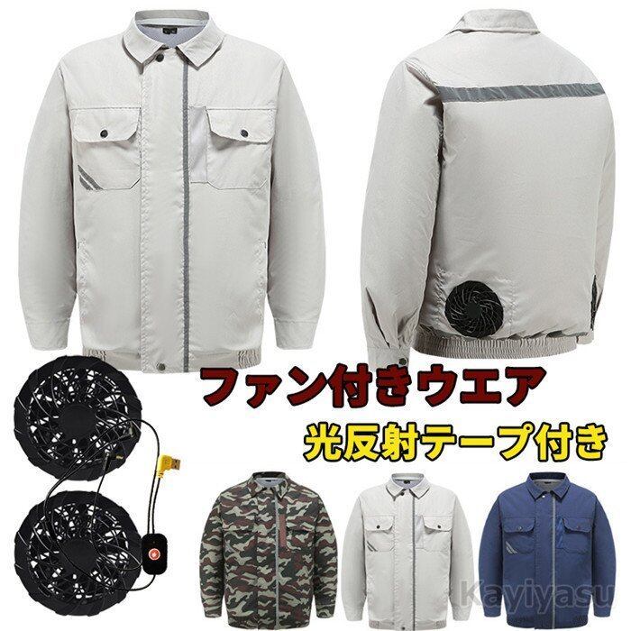 空調作業服セット 2つファン付き 長袖 メンズ 速乾 光反射テープ付き 夏 電動ファン付きワークウェア 冷房服 ひんやり 男性用 USB式 扇風機作業着 農作業ktf1540812583967 | yappy00