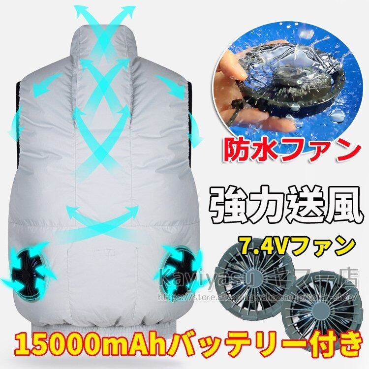 【空調作業服フルセット/15000mAhバッテリー付き/防水ファン使用】2021新作 空調ベスト 2個ファン付き作業着 クールベスト チョッキ 大風量 冷却服 空調ウェアktf1540985416f50 | yappy00