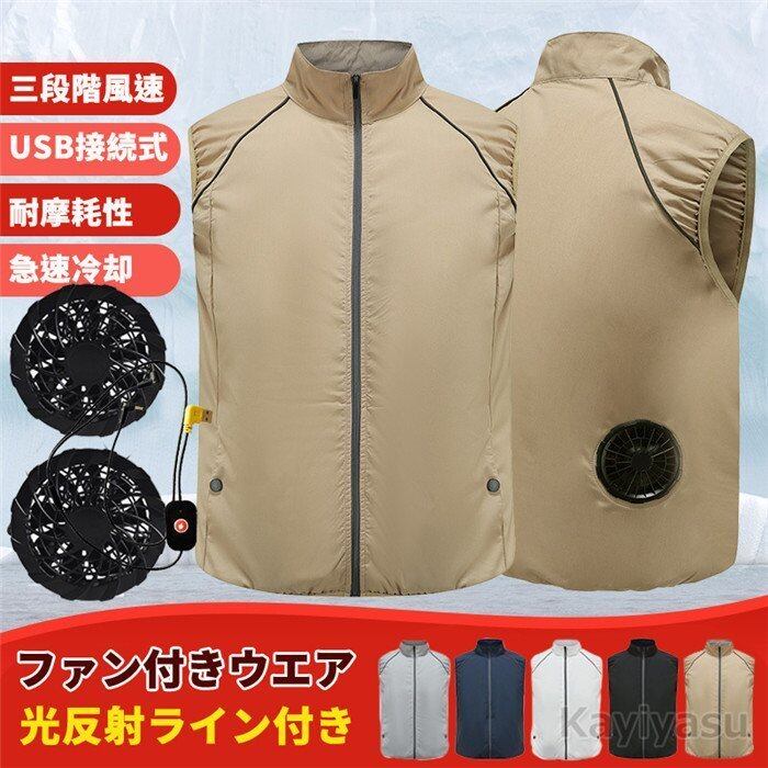 空調作業服ベスト ゴルフウェア 袖なしジャケット メンズ レディース 無地速乾 光反射ライン付き 夏チョッキ フィッシングウエア 冷房服 ひんやり 2つファンktf15411116804e7 | yappy00