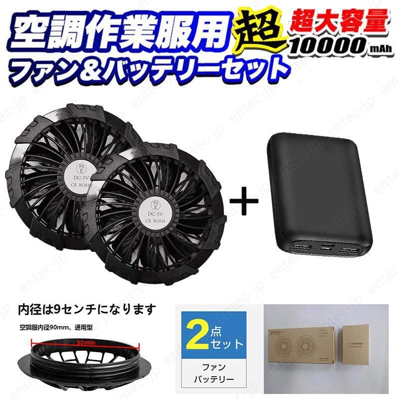 空調ベスト用 バッテリーファンセット 10000mAh大容量 9枚羽強力ファン大風量 空調ウェア 涼しい PSE認証済み 作業服ファン 空調作業服 扇風機 互換用 | yappy00