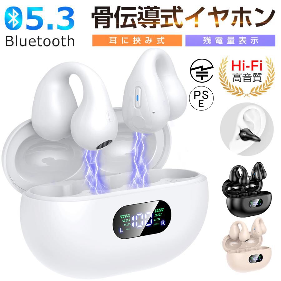 骨伝導イヤホン ワイヤレスイヤホン Bluetooth5.3 ヘッドホン 耳掛け式 ブルートゥース イヤホン 残量表示 耳クリップ型 Hi-Fi高音質 iPhone Android 対応