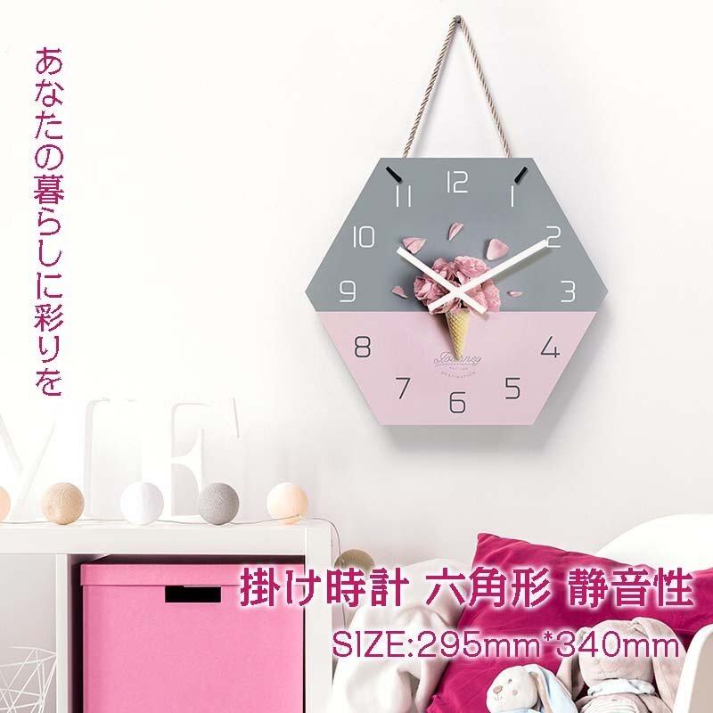 壁掛け時計 掛け時計 掛け おしゃれ 北欧 木目調 花 ピンク 六角形 静音 非電波 シンプル 見やすい 装飾 リビング インテリア飾り 引越し祝い 新築祝いsz100076643b008