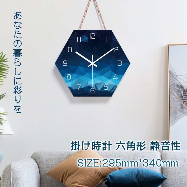 壁掛け時計 掛け時計 掛け おしゃれ 北欧 木目調 幾何学模様 六角形 ブルー 静音 非電波 シンプル 見やすい 装飾 リビング インテリア飾り 引越し祝いsz1000862319075
