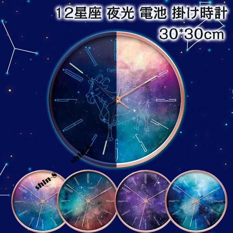 壁掛け時計 掛け時計 夜光 おしゃれ ウォールクロック クロック 12星座 夜光 電池 静音 夜光る 夜でも見える 静か 蓄光塗料 PVCsz100096587e32b