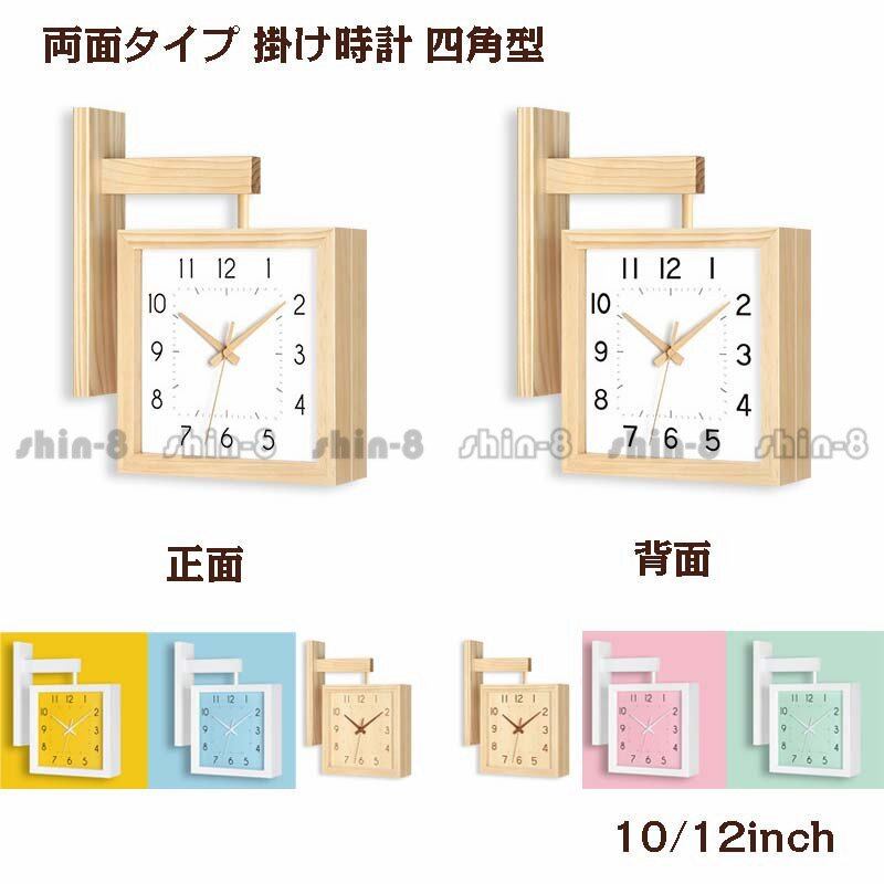 壁掛け時計 掛け時計 四角型 両面タイプ クロック 新生活応援 インテリア 木製 ガラス 壁掛け モダン 北欧 新築祝い ギフト 電池 静音 8/10/12/14/16inchsz1001031424f6e