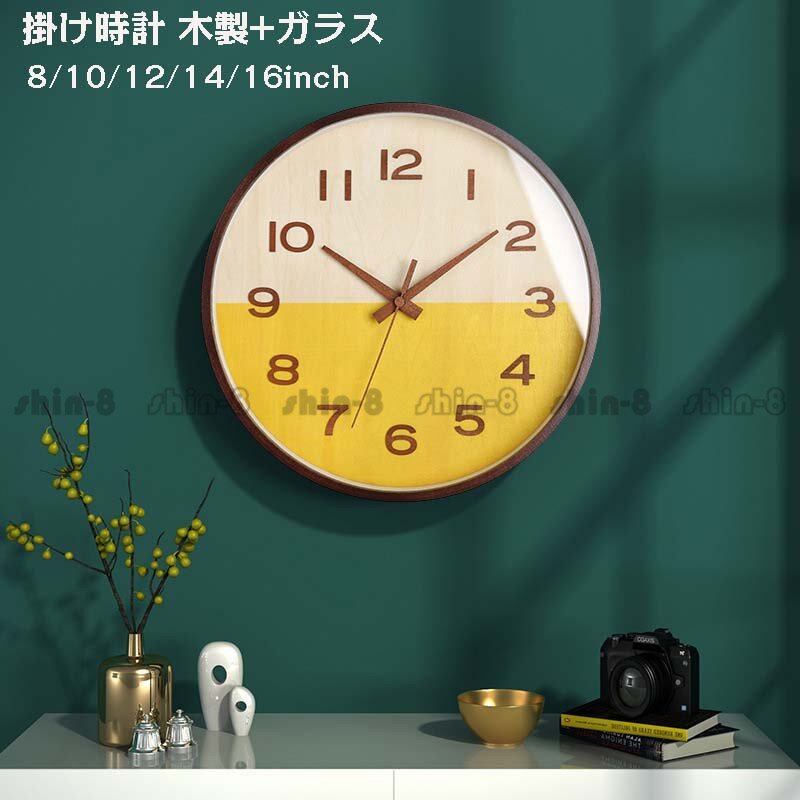 壁掛け時計 掛け時計 おしゃれ クロック 新生活応援 インテリア 木製 ガラス 壁掛け モダン 北欧 新築祝い ギフト 電池 静音 8/10/12/14/16inchsz100138875f500