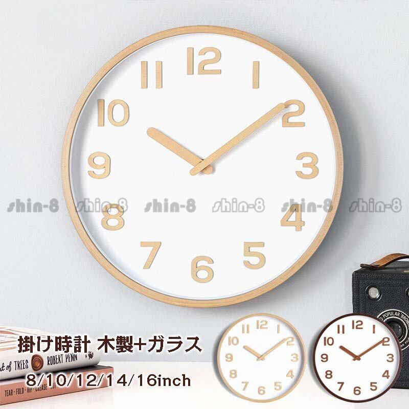 壁掛け時計 掛け時計 おしゃれ クロック 新生活応援 インテリア 木製 ガラス 壁掛け モダン 北欧 新築祝い ギフト 電池 静音 8/10/12/14/16inchsz100140386f500