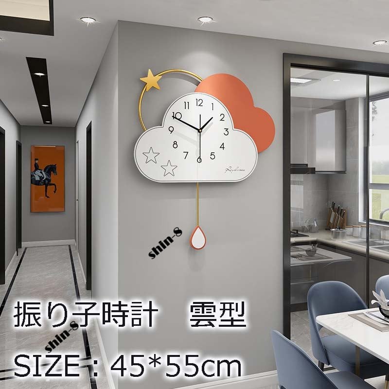 壁掛け時計 掛け時計 おしゃれ 振り子時計 クロック 雲型 新生活応援 木製 インテリア 金属 壁掛け モダン 北欧 新築祝い ギフト 電池 静音sz100272881e1f1