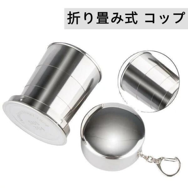 折りたたみ ステンレス カップ 折り畳み コップ 携帯コップ 蓋付き 収納便利 軽量 伸縮収納式コップ 盃 ポータブル キャンプ用食器 耐