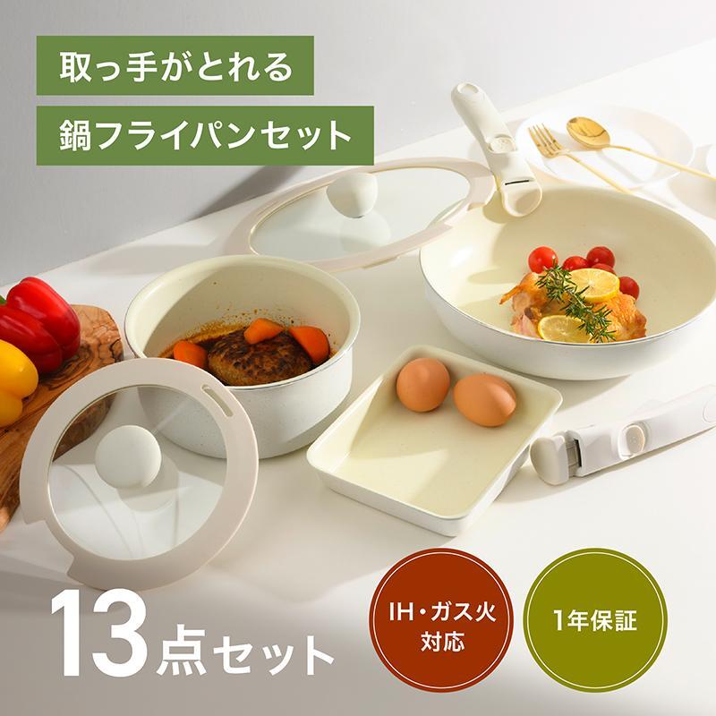 フライパン13点セット IH ガス対応 フライパンセット 蓋つき 取っ手が取れる 20cm 26cm 鍋 おしゃれ IH対応 かわいい コーティング ガス火 ふた付き ガラス蓋